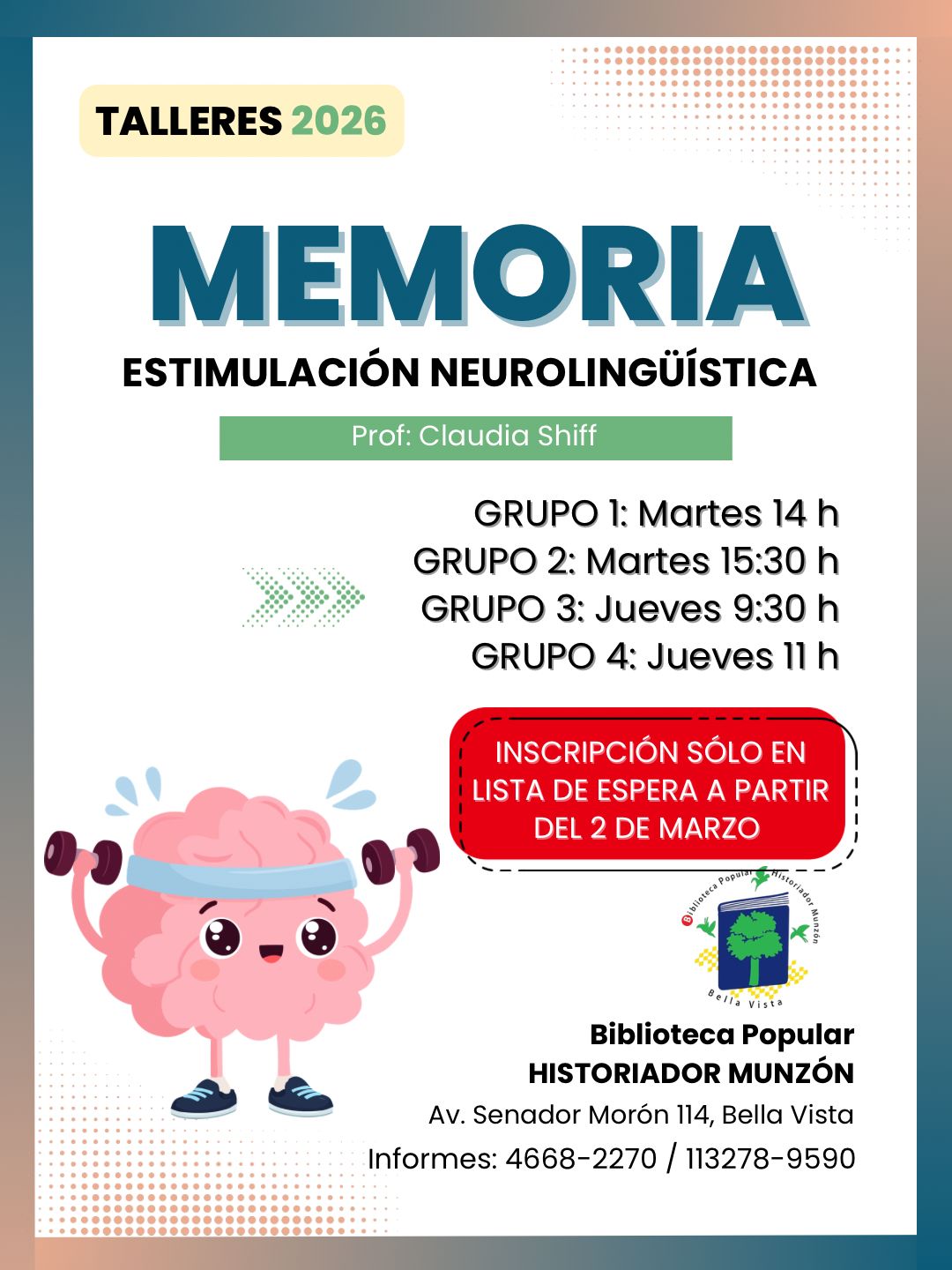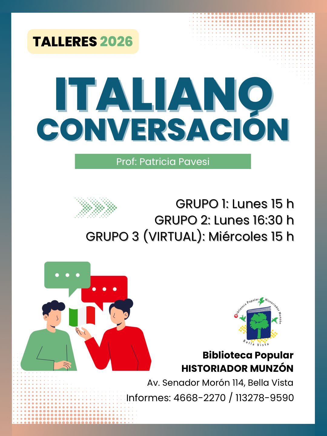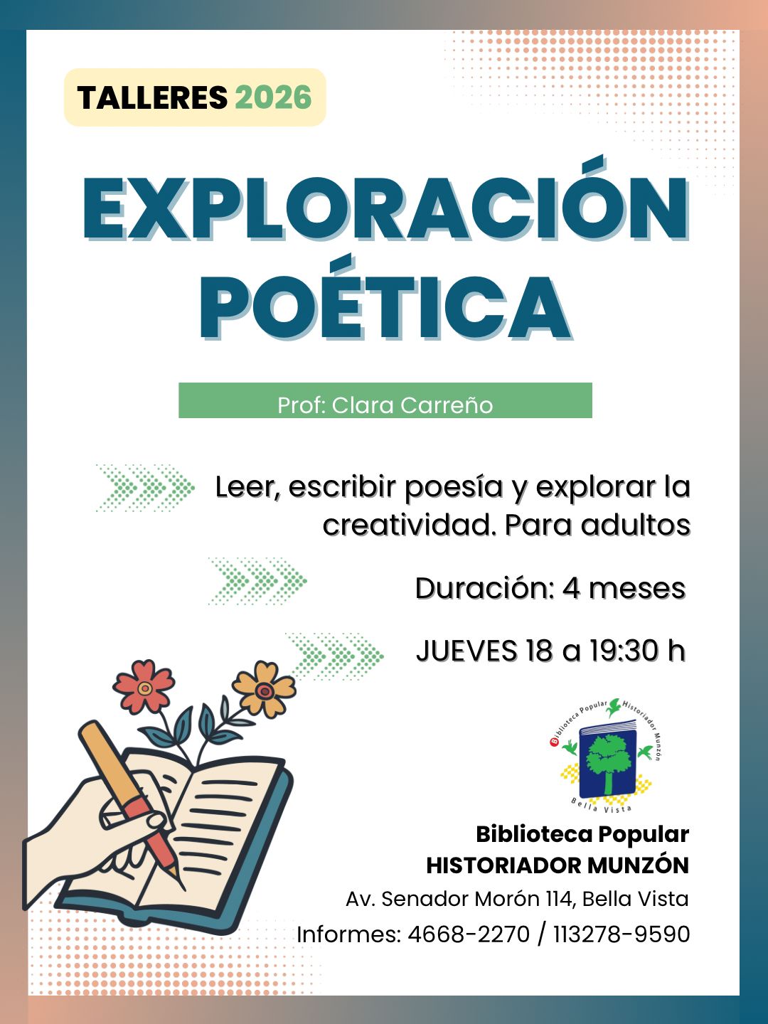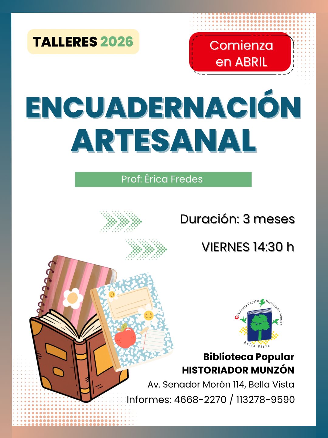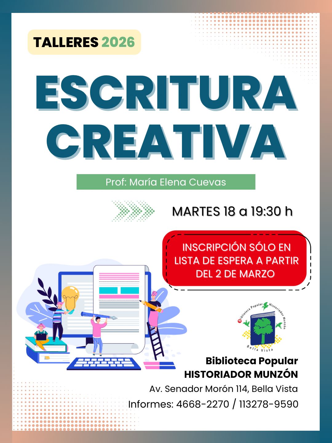 TALLERES Y SEMINARIOS EN LA BIBLIOTECA POPULAR HISTORIADOR MUNZÓN