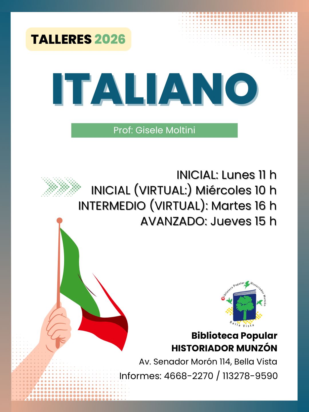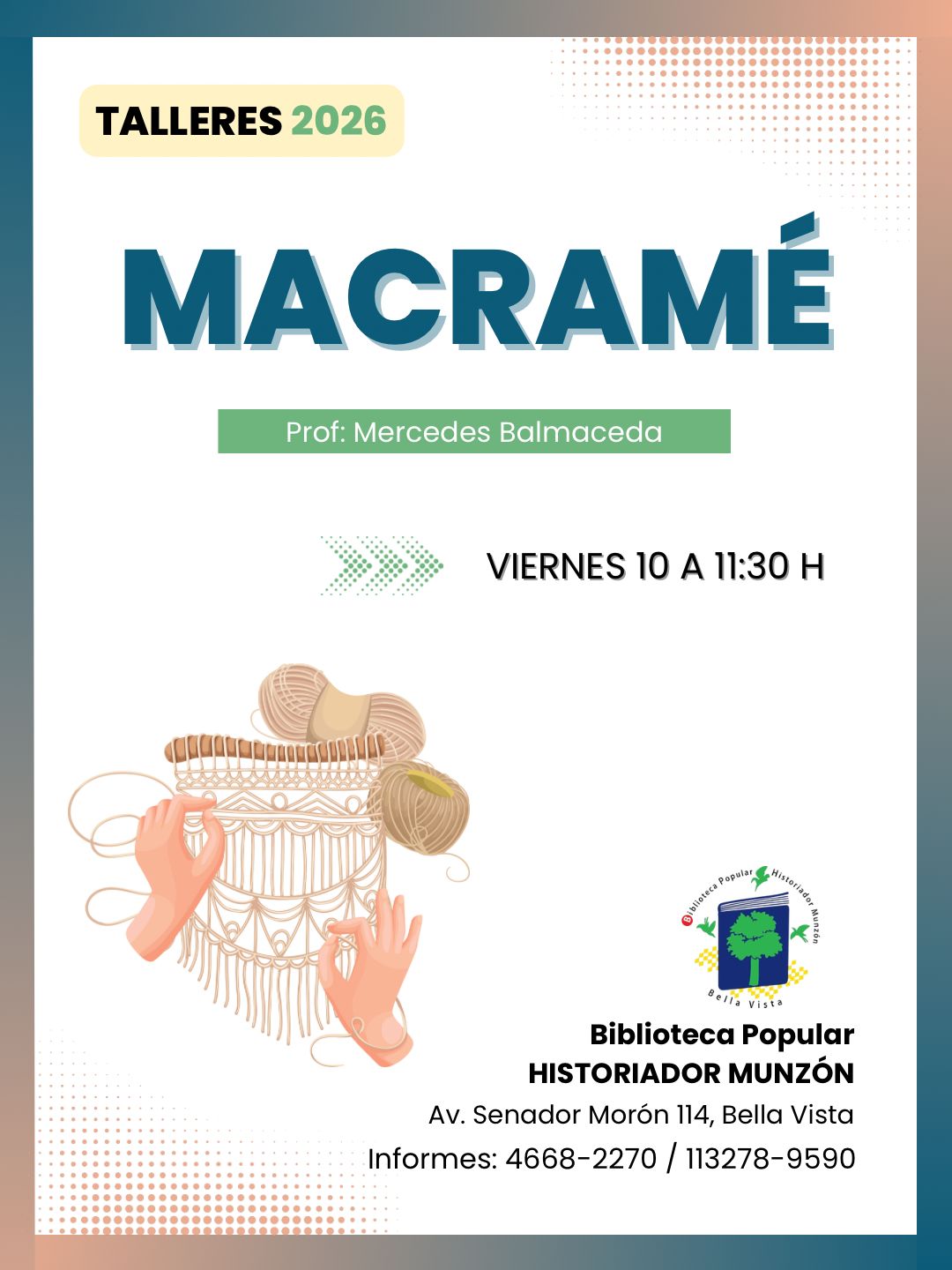 Los talleres en la BPH Munzón están destinados a toda la comunidad, ofreciendo variedad de temáticas de interés y aranceles accesibles, con descuento a los asociados.